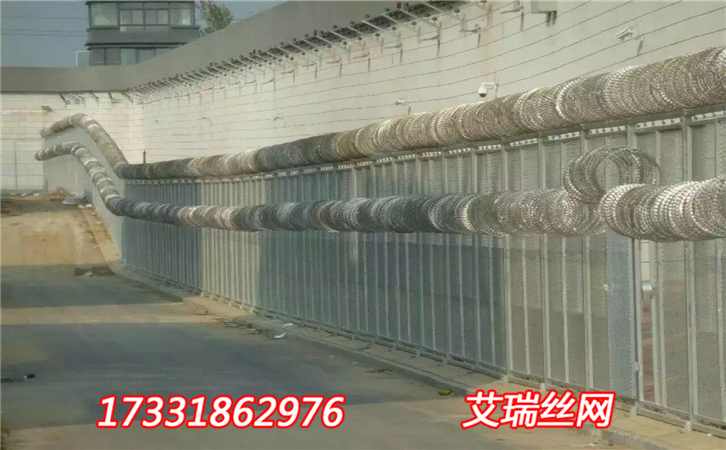 监狱钢网墙是一种新型防护网,由锐利尖角镀锌钢板或不锈钢薄板做刀片,钢丝做芯线组合而成的防护器材. 监狱钢网墙刀片刺网具有吓阻、防翻越等效果,材质坚硬,高强度,高张力,造型设计独特,不宜触摸,因而能达到极好的防护隔离效果.