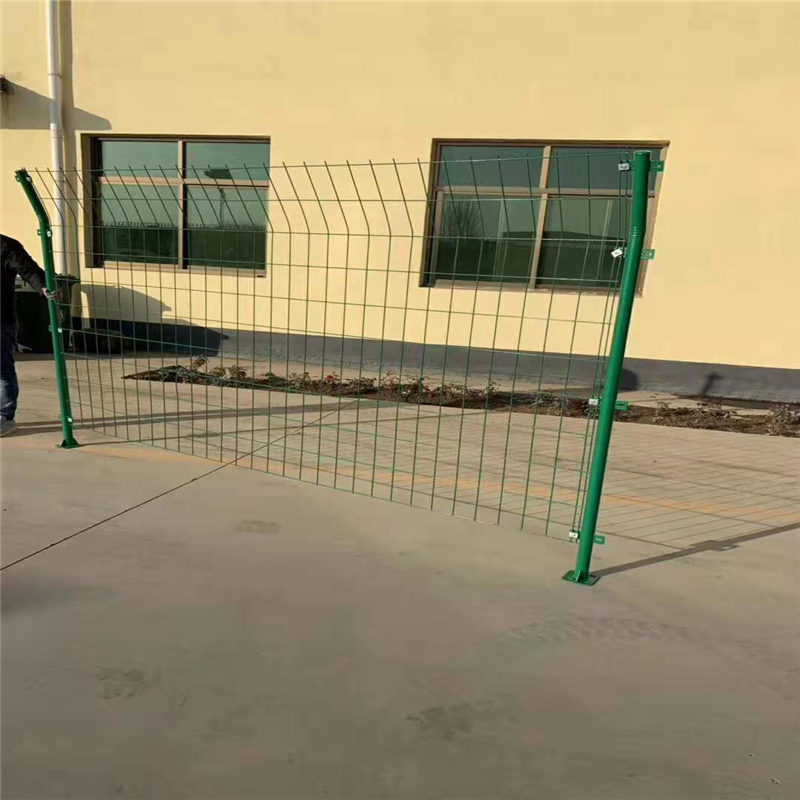 【2】双方丝护栏网相比上边是经济实用的,它的价格为30元一米,它是由低碳钢丝通过焊网机校直---焊接浸塑或许喷塑而成的。重量为9kg,色彩:白色或许草绿。夺目标识:护栏两边与立柱连接处均焊接双丝。