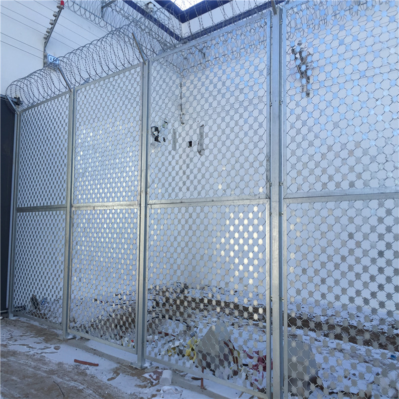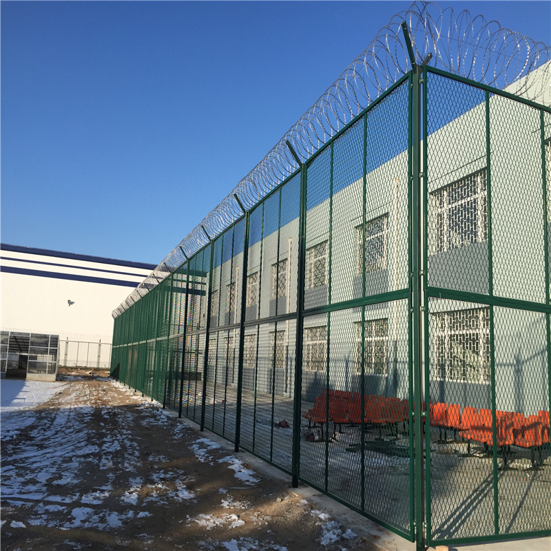 监狱隔离栅是一种新型防护网,由锐利尖角镀锌钢板或不锈钢薄板做刀片,钢丝做芯线组合而成的防护器材该产品具有吓阻、防翻越等效果。材质坚硬,高强度,高张力,造型设计独特,不宜触摸,因而能达到较好的防护隔离效果。还具有施工简便,经济实用等优点。