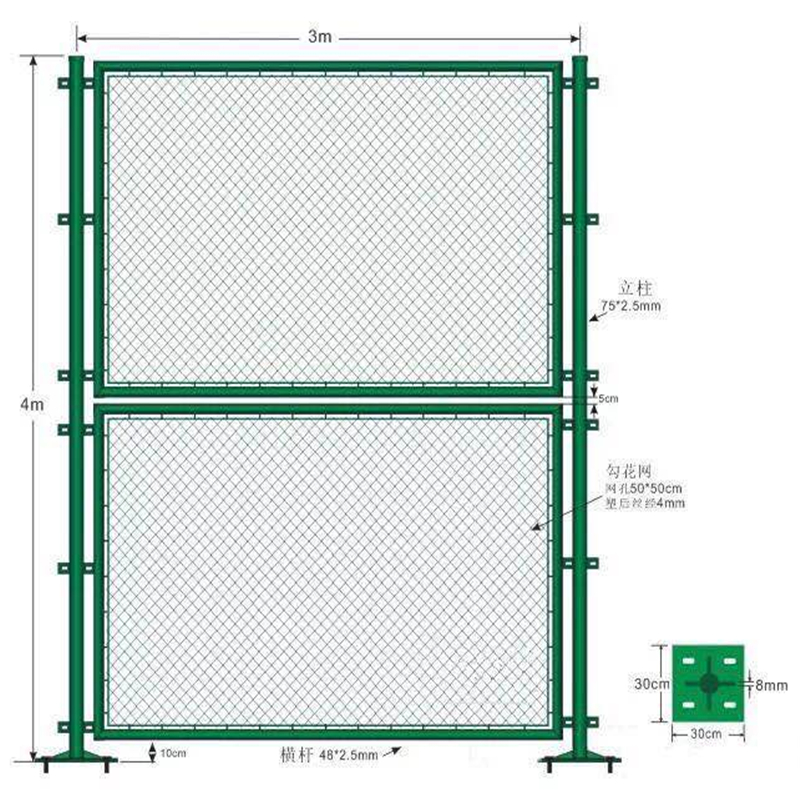 球场围栏网是采用低碳钢丝编织焊接而成,具有网孔均匀、弹性好、不易受外力撞击而变形,结构合理,经久耐用的特性。