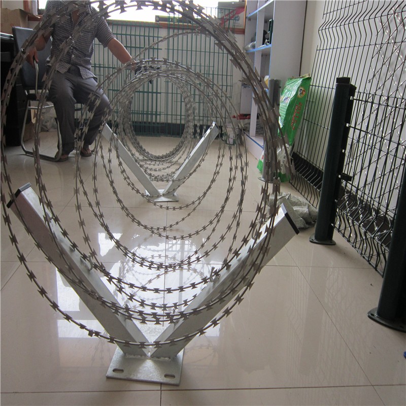 刀片刺绳(razor barbed wire)也称为刀片刺丝、刀片刺网、刺丝滚笼,是一种新型防护网。刀片刺绳具有美观、经济实用、防阻效果好、施工便利等优异特点,目前,刀片刺绳已被广泛应用于许多国家的边防哨所、军事领域、监狱、看守所、政府建筑物和其他国家的安全设施。