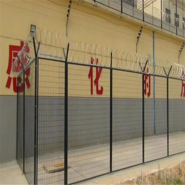 监狱防护铁丝网网片整体尺寸规格:2mX3m,1.8mx2.7m,2.5mx2.5m等等。