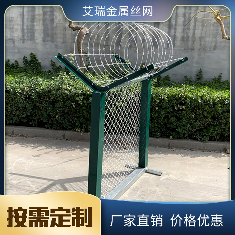注:如果在机场护栏网顶部加装刀片刺丝、刀片刺绳后又好的增强了安全防护功能。选用电镀、热镀、喷塑、浸塑等防腐办法,具有好的、抗晒、耐候等特色。其商品外型漂亮、花色多样,既起到围栏效果,又起到美化效果。因为具有安全性高、防攀爬才能好,网片衔接办法选用特制SBS紧扣件,有效避免人为的破坏性拆开,横向四道折弯加强筋,使网面强度明显添加。