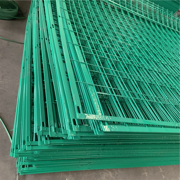 公路隔离网防腐处理:经除锈、打磨、钝化、硫化等工艺后,采用镀塑处理,色彩为果绿色,镀层厚度为0.6~1.6mm,镀粉采用抗老化性能较佳的进口耐候性树脂粉料,镀层必须颜色一致,表面光滑,不允许有流挂、滴瘤或多余结块。镀件表面应无漏镀、露铁等缺陷。