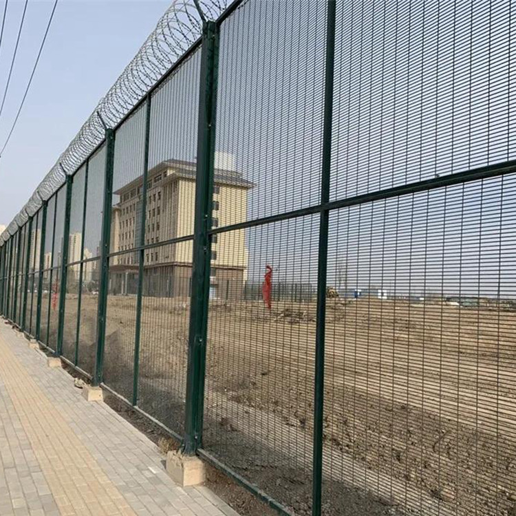 监狱金属网的种类很多,其中就包括监狱钢网墙,监狱金属钢网墙也可以叫监狱隔离网,是一种由钢丝焊接后再镀锌再喷塑或者浸塑的高端护栏网产品。通常采用Y字型立柱,这种造型是为了方便在顶部架设刀片刺网,这种组合模式可以大大提高监狱隔离网的安全防护性能。