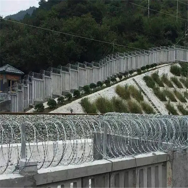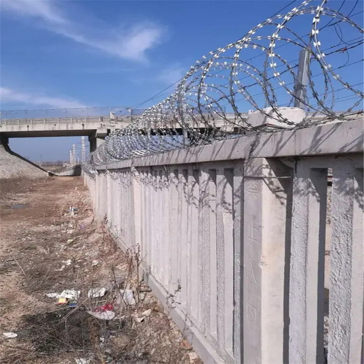 刺丝滚笼主要包括刀片剌网,刺绳,和支架等.安装好后具有很好的阻吓效果,与能起到相同作用的产品比起来性价比是高很多的.主要制作工艺就是由热镀锌钢板或者不锈钢钢板冲压出尖锐的刀片,然后由高张力镀锌钢丝或者不锈钢丝来做芯线组合构成的防护产品。