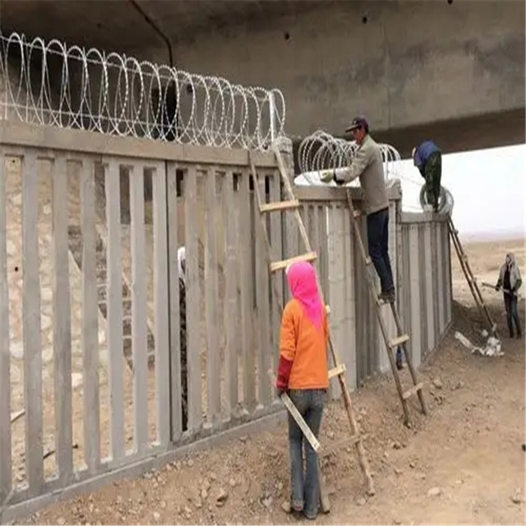 刺丝滚笼安装工人一定要戴好专用手套,防止被刺丝滚笼扎破。工人不要年龄太大,防止从水泥栅栏上面滑落,造成人员伤亡。安装刺丝滚笼时一-定要做到“"严直齐美、 间距均匀”美观和防护的双结合。刺丝连接卡的位置,施工中 ,首先要把纵向拉筋拉直,两道拉筋成平行状态;均匀的把刺丝滚笼分开,固定加密支架,随后加固刺丝连接卡。