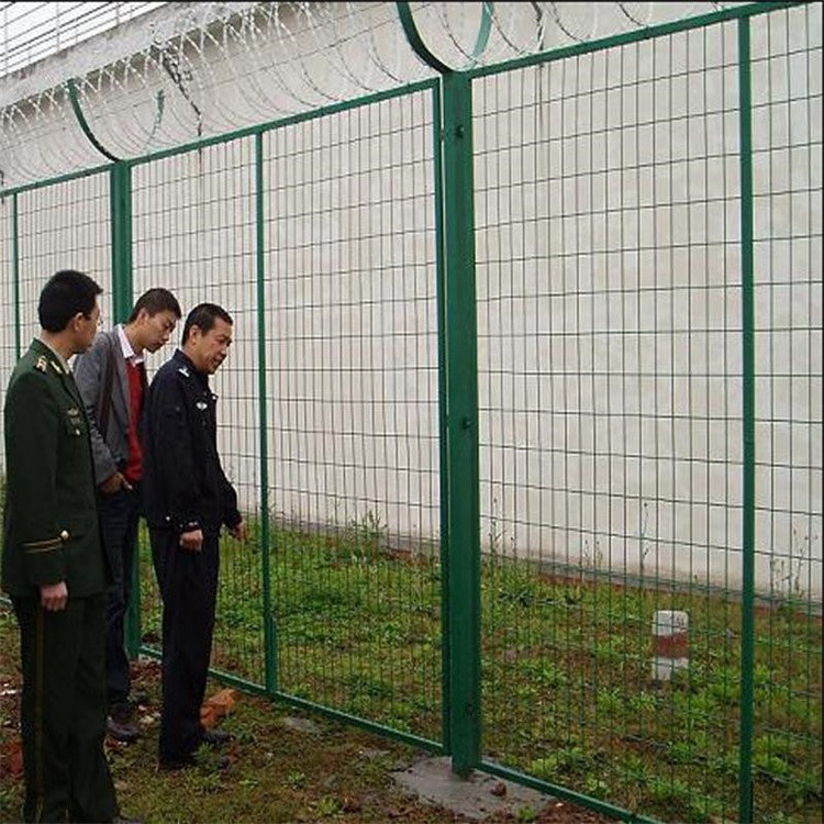 监狱围墙周界铁丝网防腐形式:电镀、热镀、喷塑、浸塑。