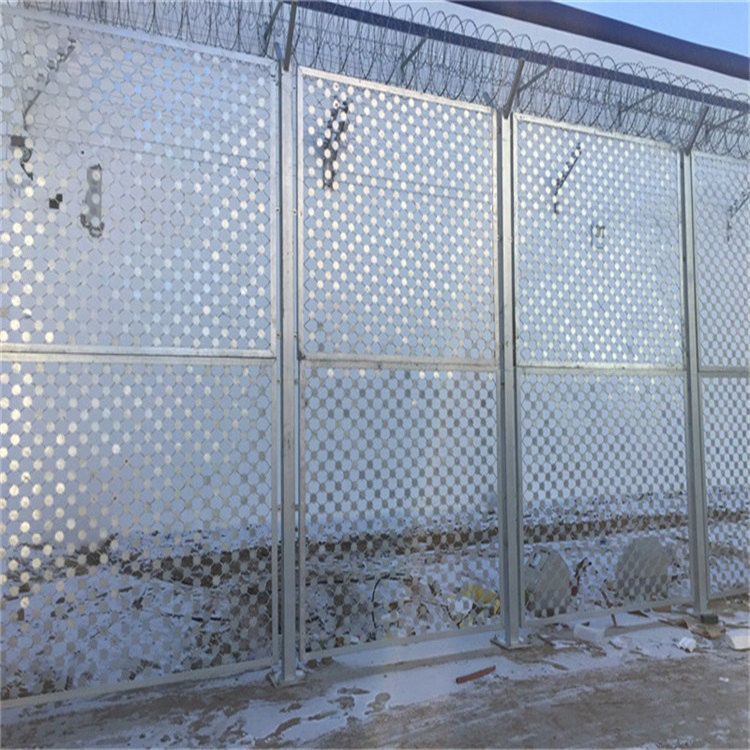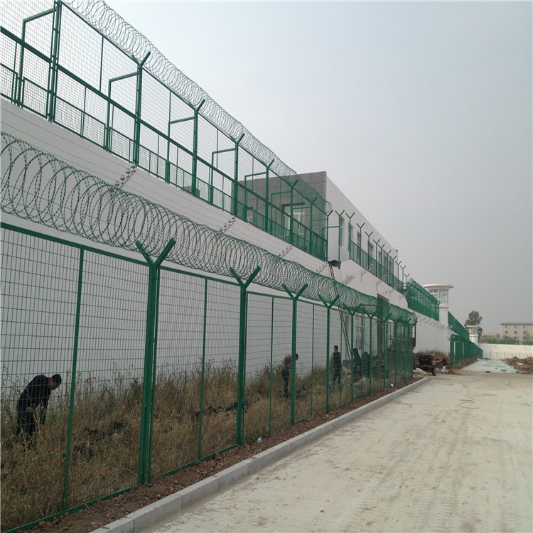 监狱钢网墙又称作“Y型安全防御护网”,是由V型支架立柱加强型焊接片网,安全防盗连接件和热镀锌刀片刺网组成强度和安全防御性级别很高。被广泛应用在监狱,军事基地等高安全场所。