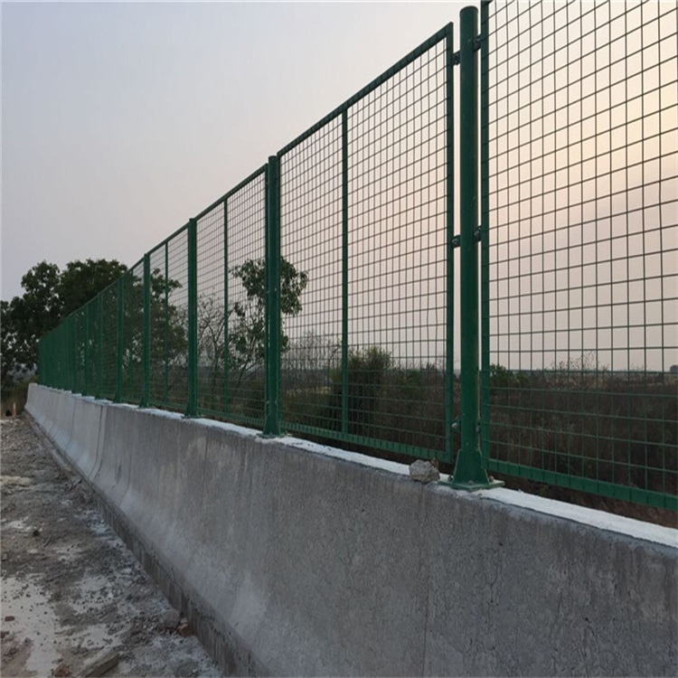 高速公路防落物网结构类型 状为方形、菱形,网孔规格50×50mm、40×80mm、50×100m,75×150mm等。网片尺1200mm、1500mm、180omm,可更具实际需求定制。边框使用L30×30mm角钢。立柱为60×2.5mm、75×2.5mm,底部法兰盘固定或石灰浇筑。标准规格为1800×2500mm。非标准高度限于2500mm,长度限于3000m。