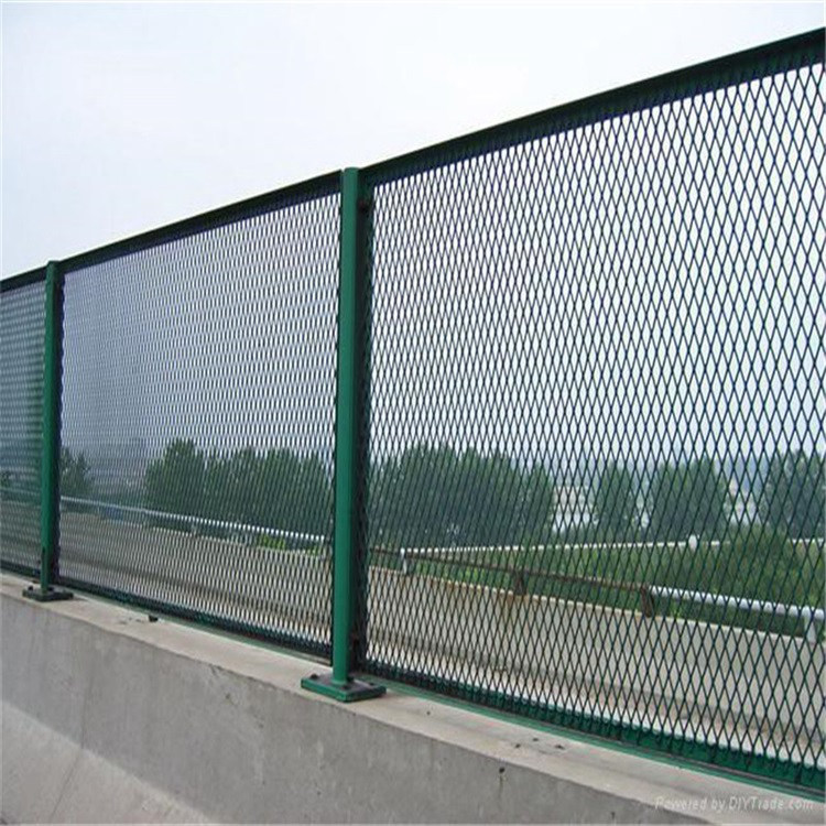 高速公路防落物网采用钢板网结构,钢板网为 2.5mm 厚整板加工而成,丝梗宽度为 2.5mm,网格尺寸为 22×60mm,高速公路防落物网网片高1.2m。网片焊接于角钢边框上。除紧固件、地脚螺栓、预埋法兰盘采用热浸镀锌处理外,其它构件均应进行涂塑处理,涂塑层颜色采用薄荷绿;防腐符合《公路交通工程钢构件防腐技术条件》GB/T18226-2015 的要求。