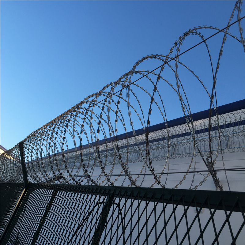 监狱铁丝网是用在监狱、看守所、劳教所的一种防攀爬隔离的一种防护网,在围网顶端安装一道带刺铁丝网,进一步加固防护。
