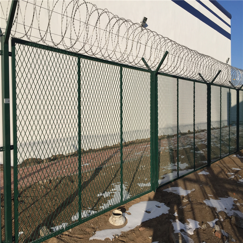 监狱金属隔离钢网墙 看守所焊接刀片隔离网是非常重要的监区安全防护设施,是由焊接钢网加蛇腹形刀刺网组合而成。产品具有结构新颖、坚固紧密、网面平整、网孔均匀、刀锋锐利、防攀爬、耐腐蚀性强等特点。Y型架上边架蛇腹型刀刺:由热镀锌钢板或不锈钢薄板冲压出尖利的刀片状,高张力镀锌钢丝或者不锈钢丝做芯线组合而成的阻尽器材。刀刺直径采取50-60厘米,刀型整洁、刀片锋利、排列均匀致密、连接坚固、防腐才能强,可能达到防攀越、防拆卸更高保险等级。