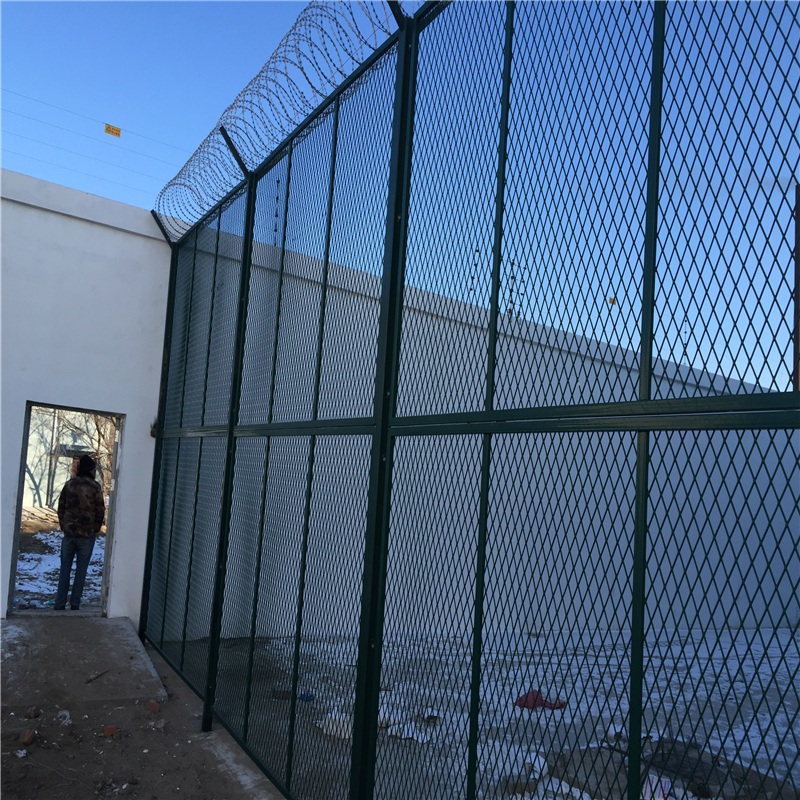 监狱加高钢网墙可平地安装,也可在围墙上二次安装,有效防止攀逃。直刺式刺网隔离带,是用柱体和普通刺绳横、纵、斜向交叉绑定成刺网隔离带。