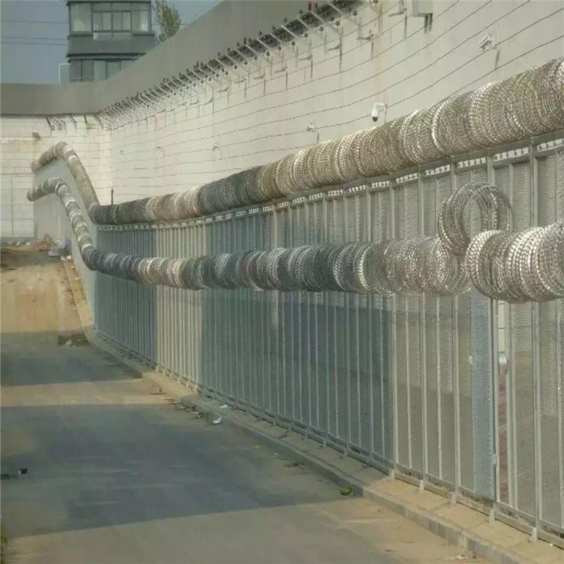 丝)之上,由锐利尖角镀锌钢板或不锈钢薄板做刀片,高张力钢丝做芯线组合而成的。锋利的刀型刺由双线扣装后成蛇腹状,既美观又让人不寒而栗。