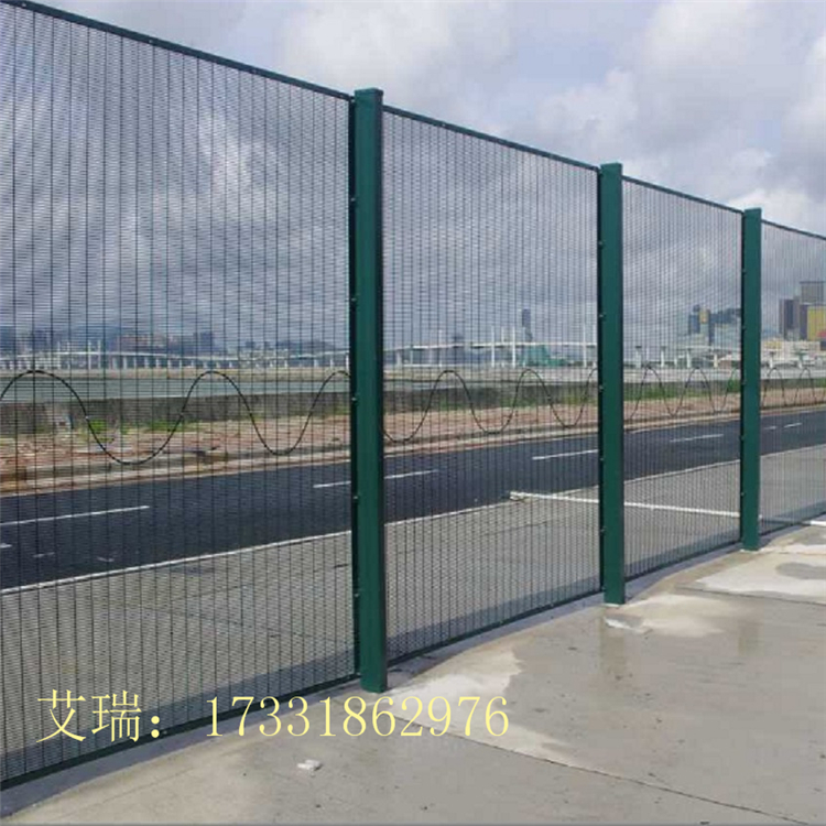 358监狱密纹防攀爬网采用358密纹网制作,因此又称为358护栏,358防爬网,是目前护栏防护中非常受欢迎的一种护栏类型,因其孔小,能很大程度上防止人或工具攀爬。主要应用于军事、机场、安全部队、监狱、轻轨、城际列车等的重要隔离措施。