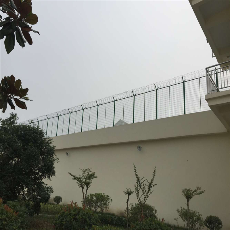 要按照图纸要求把立柱、支撑埋入混凝土基础中时,施工单位应设置必要的临时拉索或支撑,以把立柱固定于适当位置,直到混凝土硬化为止。混凝土养生7D期间,不应在立柱、拉索和支撑上安装或拉紧任何材料或部件。所有立柱均应按照图纸要求和线形垂直埋设,看守所、拘留所防攀爬金属隔离网安装完毕,立柱基础均需进行填埋后压实处理。
