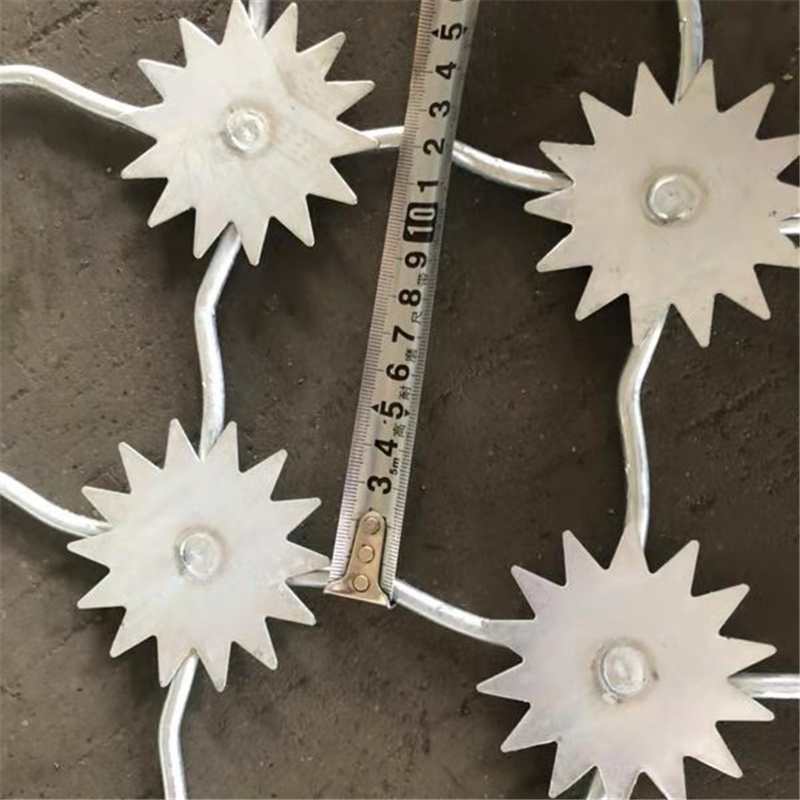 监狱钢网墙常用样式太阳花刺网,刀刺网,密纹网等样式。
