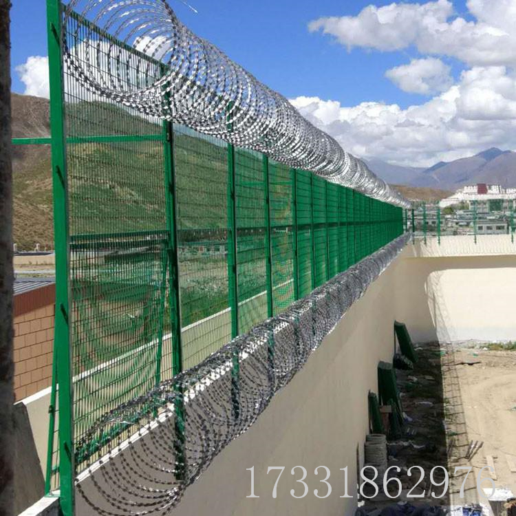 监狱、看守所巡逻道隔离网上部安装刀刺滚笼,刀刺滚笼具有吓阻、防触碰、防翻越等效果,材质坚硬、高强度、高张力、造型独特、不易触摸,因而能达到极好的防护隔离效果。巡逻道隔离网一般高度采用2米/2.5米/3米等