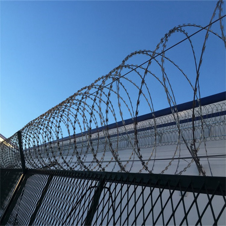 世界各国已将蛇腹形刀刺网 用于军事重地,牢狱刀片刺绳防护网,机关单位,银行,以及生活小区围墙,私人住宅,别墅的围墙,门窗,高速公路,铁路护栏以及边境线等用来防护保安。