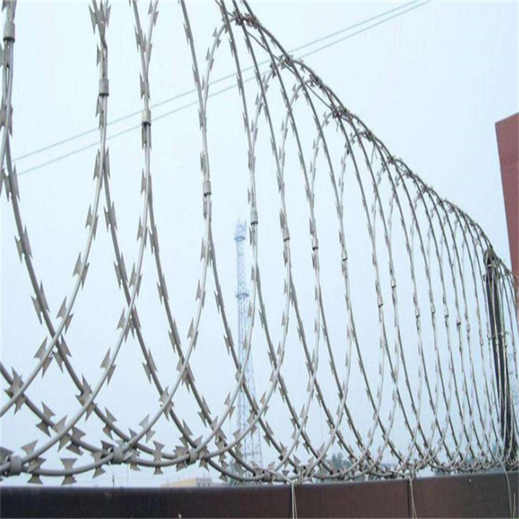 外形美观,线条简捷,,银色外表,现代潮流,防盗设计,304不锈钢刀片刺绳环绕间用刺绳卡扣连接,防盗,安全,开启方便,规格多,满足不同环境。
