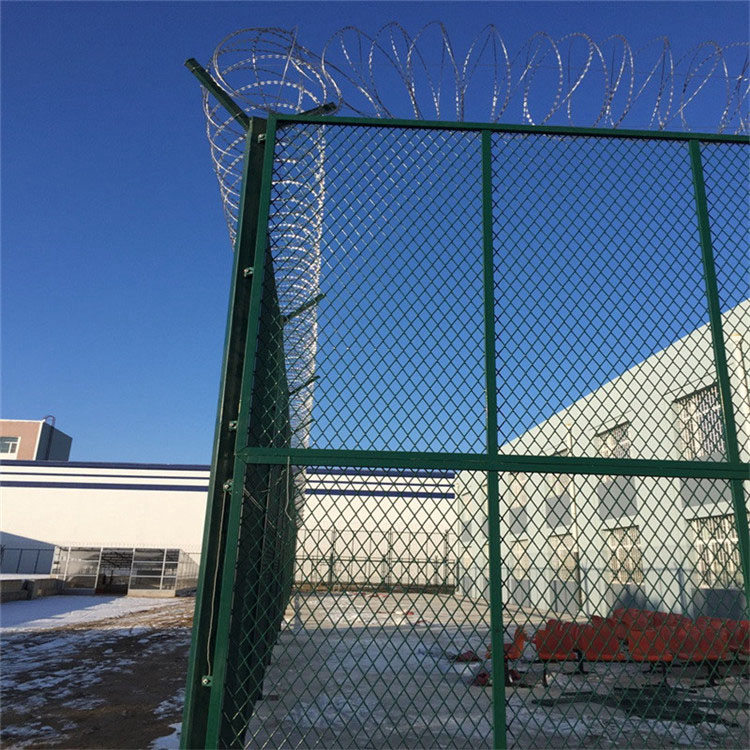 监狱防攀爬金属隔离网、监狱钢网墙、监狱围栏这三个叫法实际上就是一种产品,每个地区的叫法按不同,都是监狱看守所安装的一种防护网,材质一般采用Q195低碳钢丝焊接成所需尺寸的网片大小,一般每片规格有2米x2.5米,2.5米x3米,1.8米x2米等各种尺寸,客户可根据要求选购,成型的网片一般都是没有经过表面处理的黑片,有些是需要焊接边框的有些直接边丝直接韩城双丝的,在经浸塑处理,PVC浸塑是通过加热浸塑液放入监狱护栏网、监狱钢网墙、监狱围栏的黑丝网片及立柱使之冷却后塑料包覆在护栏网表面。这种工艺有无需模具、加工成本低、成型容易、具有丰富的色彩,良好的防护性,优异的耐寒保温性以及抗酸碱性等特点被广范使用,颜色可选草绿色,墨绿色这两款是最常用的。