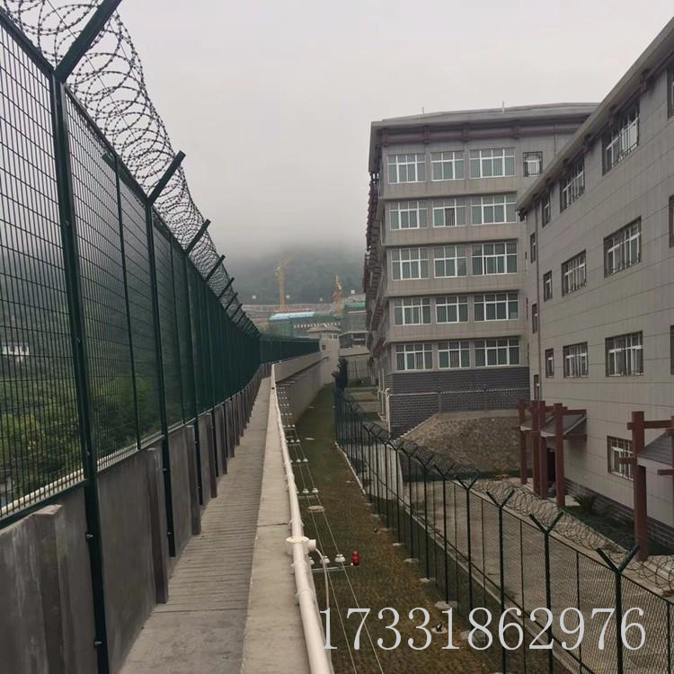 这个是大家常见的无论在是电视上还是电影上,这是要加装刺绳的,监狱防护网其实有大部分是指外部墙顶防护。