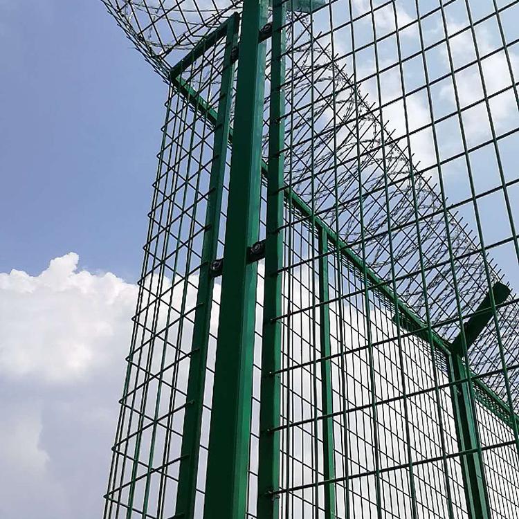 机场围栏网又称作“Y型安全防御护网”,是由V型支架立柱加强型焊接片网,安全防盗连接件和热镀锌刀片刺网组成强度和安全防御性级别很高。被广泛应用在机场,军事基地等高安全场所。