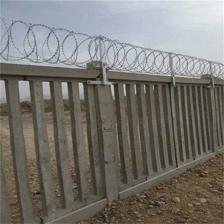 水泥栅栏刺丝滚笼是工程铁路隔离围栏的配套产品,在工程铁路防备隔离栅的上方加装刺丝滚笼,是较安全配套的流程。刀片刺绳根据安置方法不同可归纳:(蛇腹式) 螺旋式刀片刺绳,直线型刀片刺绳,平板式刀片刺绳,刀片刺绳焊接网等。刺绳的起源就是使用于农业,大家根据刺绳将农田归纳不同的小块。本设施具有防腐、防老化、抗晒、耐候等优点。比如说许多人在家里院墙上围上一圈刺绳,必须用在防止有人翻过院墙进入院内。