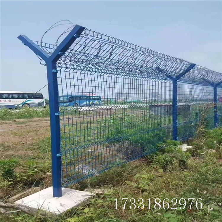 机场围界网是一种强度高、安全防护等级高的产品,由V形支撑立柱、加强焊接片网、安全防盗连接器和热镀锌刀片架组成。