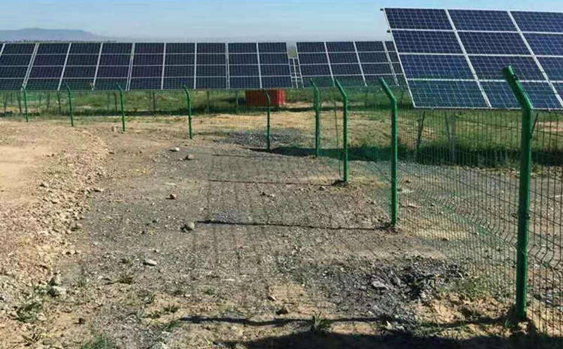光伏发电厂用的护栏网多数是用框架式浸塑网片护栏网,一般颜色为草绿色,整体外形尺寸为1.8米x3米,围网的出现改变了人们的生活水平,也大大缩短了工人们的工期,减少时间,减少成本,是一款不可多得的好产品。